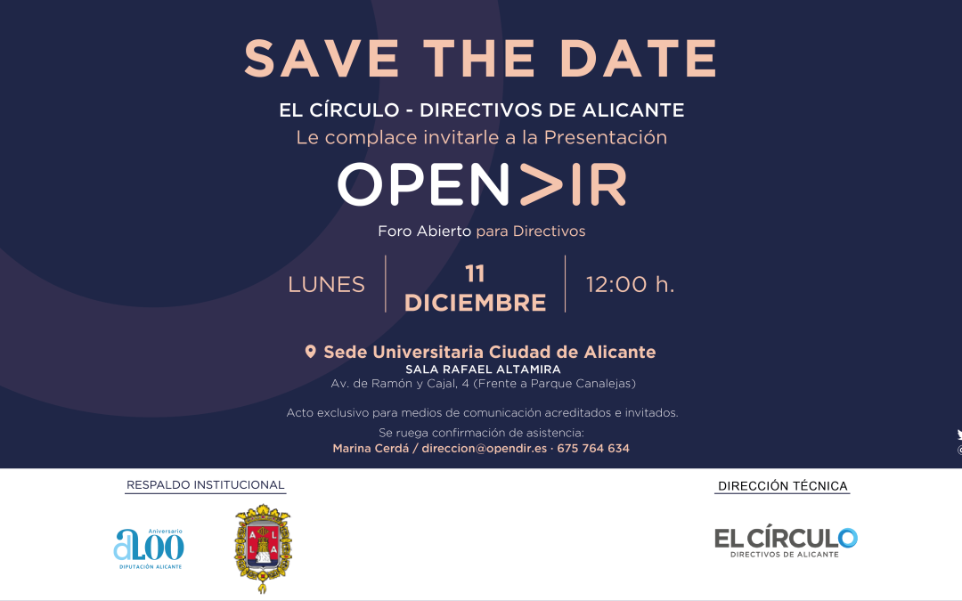 Presentación OPENDIR24 | Save the date: lunes 11 de diciembre a las 12:00h, en la Sede Universitaria Ciudad de Alicante (Av. de Ramón y Cajal, 4)