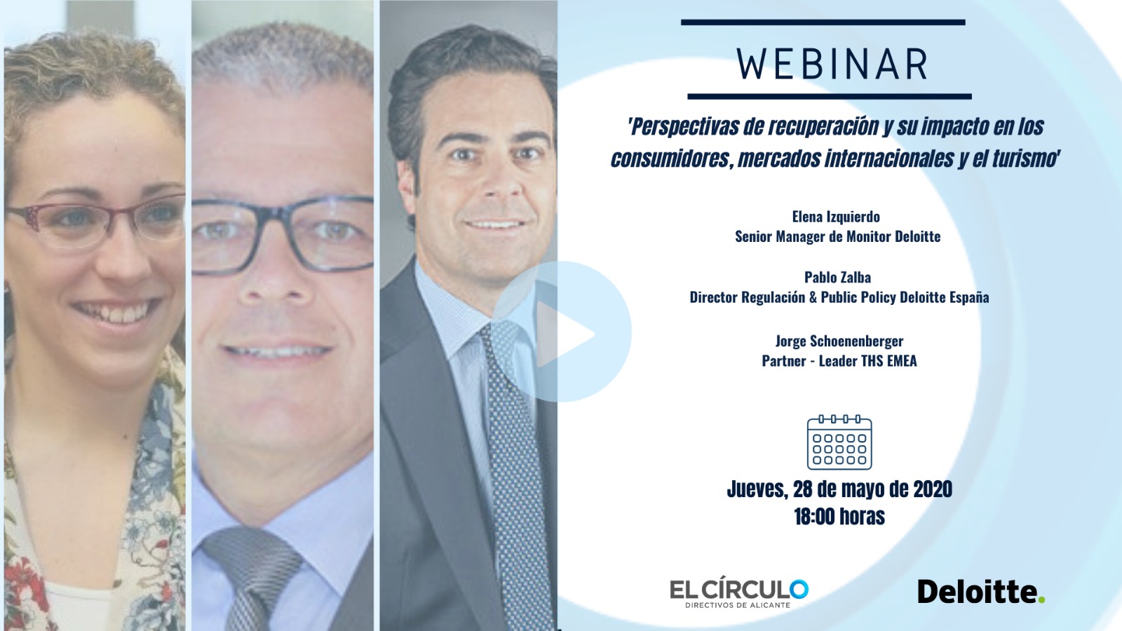 El Círculo-Directivos de Alicante te invita, en colaboración con Deloitte, al webinar ‘Perspectivas de recuperación y su impacto en los consumidores, mercados internacionales y el turismo’ el próximo jueves, 28 de mayo a las 18:00h.