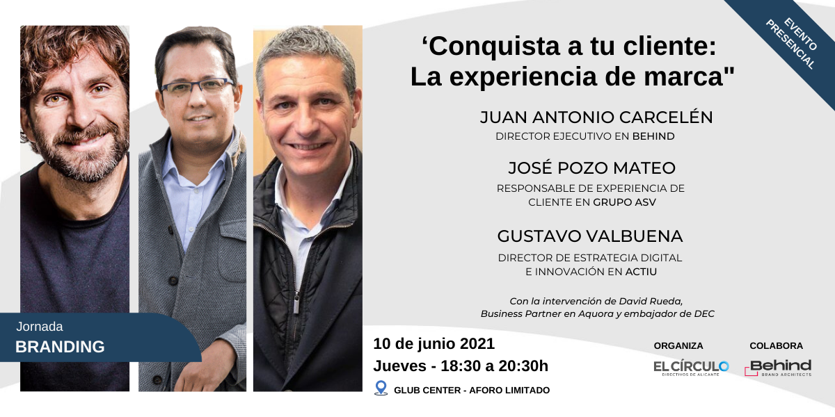 Para adquirir un mayor compromiso con nuestro cliente y ser marcas relevantes, como responsables y directivos comprometidos, debemos destinar los recursos necesarios a crear una experiencia de marca sorprendente, diferenciada e innovadora que logre transmitir la identidad de la compañía. Para abordar esta cuestión, El Círculo – Directivos de Alicante organiza, junto a Behind, la jornada “Conquista a tu cliente: La experiencia de marca” el próximo 10 de junio a las 18:30h, en formato presencial, para ayudarte a descubrir cómo construir y mantener vínculos más sólidos con tus clientes.