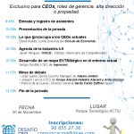 *Debido a la temática y al enfoque de la jornada, el aforo se reservará preferentemente para los cargos de directores generales, gerentes, adjuntos a dirección y propiedad (o roles de alta dirección) de empresas.