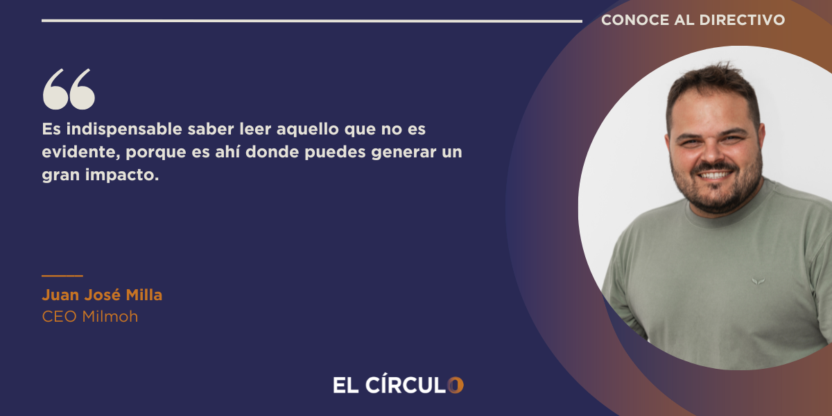 El Círculo-Directivos de Alicante continúa con la sección «Conoce a la persona detrás del directivo», un espacio en el que compartimos la experiencia de nuestros directivos para inspirarnos, conocer su historia y el camino que les ha llevado a ser líderes exitosos. Hoy hablamos con Juan José Milla, CEO Milmoh.