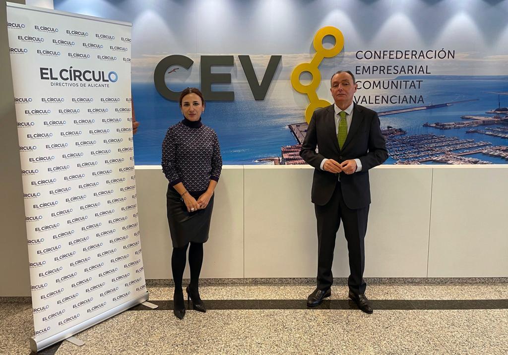 El presidente de la Confederación Empresarial de la Comunitat Valenciana (CEV), Salvador Navarro, y la presidenta de Círculo-Directivos de Alicante, Eva Toledo, han firmado un convenio de colaboración con el objetivo de mejorar la competitividad del tejido empresarial de la provincia a través de acciones dirigidas a elevar la capacitación y ampliar las competencias de los equipos directivos alicantinos.
