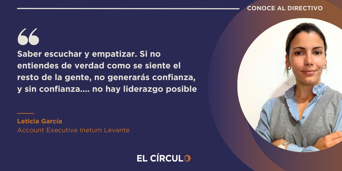 El Círculo-Directivos de Alicante continúa con la sección «Conoce a la persona detrás del directivo», un espacio en el que compartimos la experiencia de nuestros directivos para inspirarnos, conocer su historia y el camino que les ha llevado a ser líderes exitosos. Hoy hablamos con Leticia García, account executive Inetum Levante.