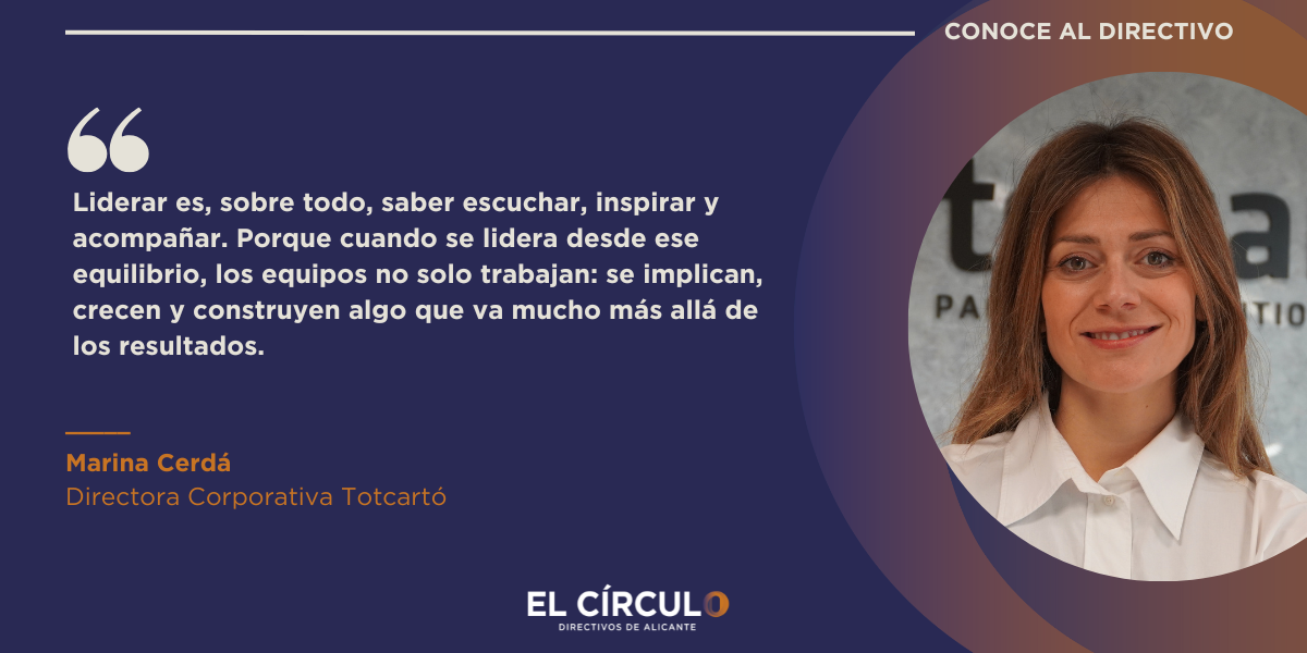 El Círculo-Directivos de Alicante continúa con la sección «Conoce a la persona detrás del directivo», un espacio en el que compartimos la experiencia de nuestros directivos para inspirarnos, conocer su historia y el camino que les ha llevado a ser líderes exitosos. Hoy hablamos con Marina Cerdá, directora corporativa Totcartó.