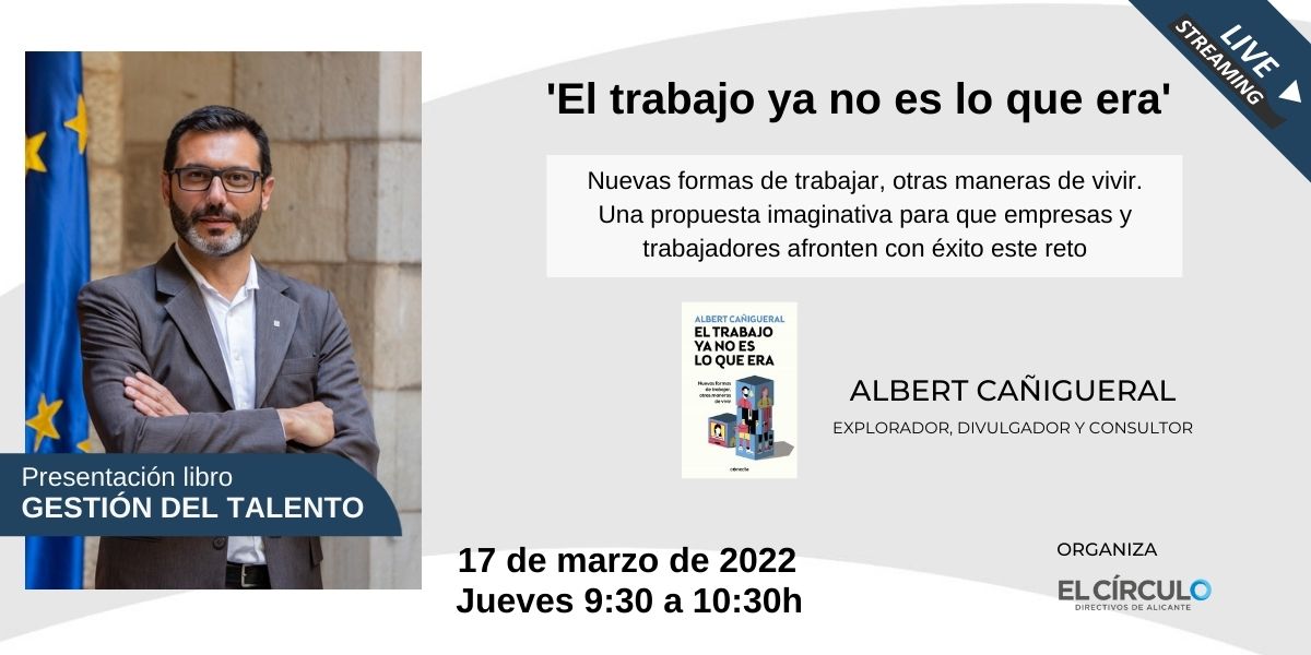 Para entender este nuevo modelo y sus consecuencias, El Círculo-Directivos de Alicante te invita a la presentación del libro ‘El trabajo ya no es lo que era’ , de Albert Cañigueral, el próximo jueves, 17 de marzo de 2022, de 9:30 a 10:30 horas, en streaming. Un diálogo liderado por Gustavo Lubián, responsable de Relaciones Institucionales de Grupo Suavinex y miembro de la junta directiva de El Círculo.