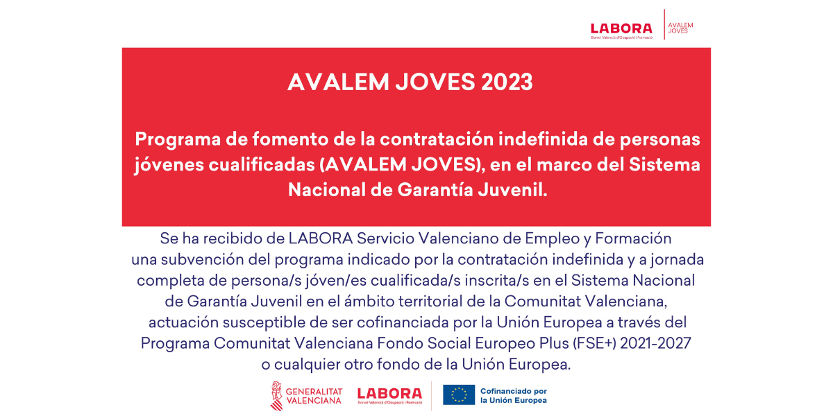 AVALEM JOVES 2023. Programa de fomento de la contratación indefinida de personas jóvenes cualificadas en el marco del Sistema Nacional de Garantía Juvenil.