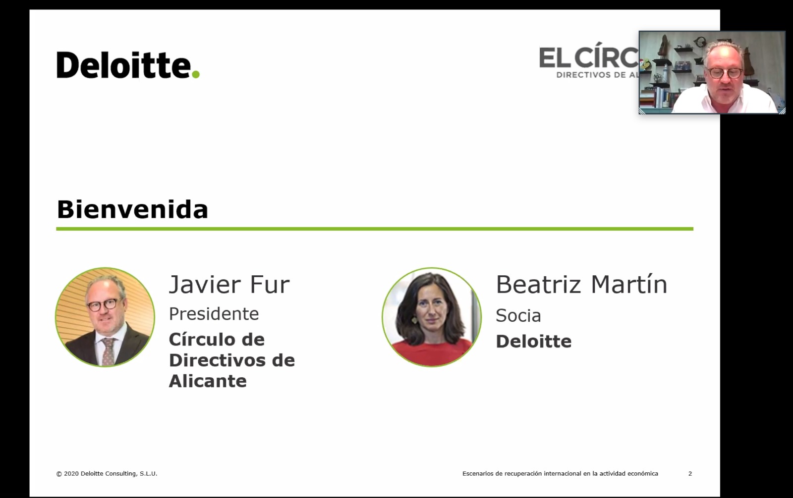 El pasado jueves, 28 de mayo, tuvo lugar el webinar ‘Perspectivas de recuperación y su impacto en los consumidores, mercados internacionales y el turismo’ organizado por El Círculo-Directivos de Alicante en colaboración con Deloitte. Los ponentes que pusieron voz a las diferentes temáticas fueron: Elena Izquierdo, Senior Manager de Monitor Deloitte; Pablo Zalba, Director Regulación & Public Policy Deloitte España; y Jorge Schoenenberger, Partner – Leader THS EMEA. El evento online contó con la bienvenida de Javier Fur, presidente de El Círculo-Directivos de Alicante, y de Beatriz Martín, socia de Deloitte en Alicante