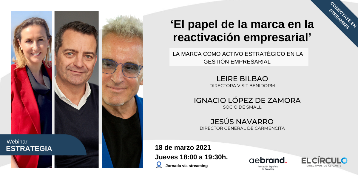 En un entorno económico complejo como el actual, la gestión estratégica de la marca es clave para la recuperación y la reactivación del tejido empresarial español. Las organizaciones deben gestionar su marca como un vector de crecimiento y de competitividad empresarial para generar valor y mantener su relevancia en el imaginario del consumidor. Por ello, la marca, gestionada como una plataforma de negocio, representa una oportunidad para una reactivación económica sostenible. Para abordar esta cuestión, El Círculo-Directivos de Alicante organiza, junto a la Asociación Española de Branding (AEBrand), la jornada digital ‘El papel de la marca en la reactivación empresarial’, el próximo jueves, 18 de marzo, a las 18:00h en formato streaming.