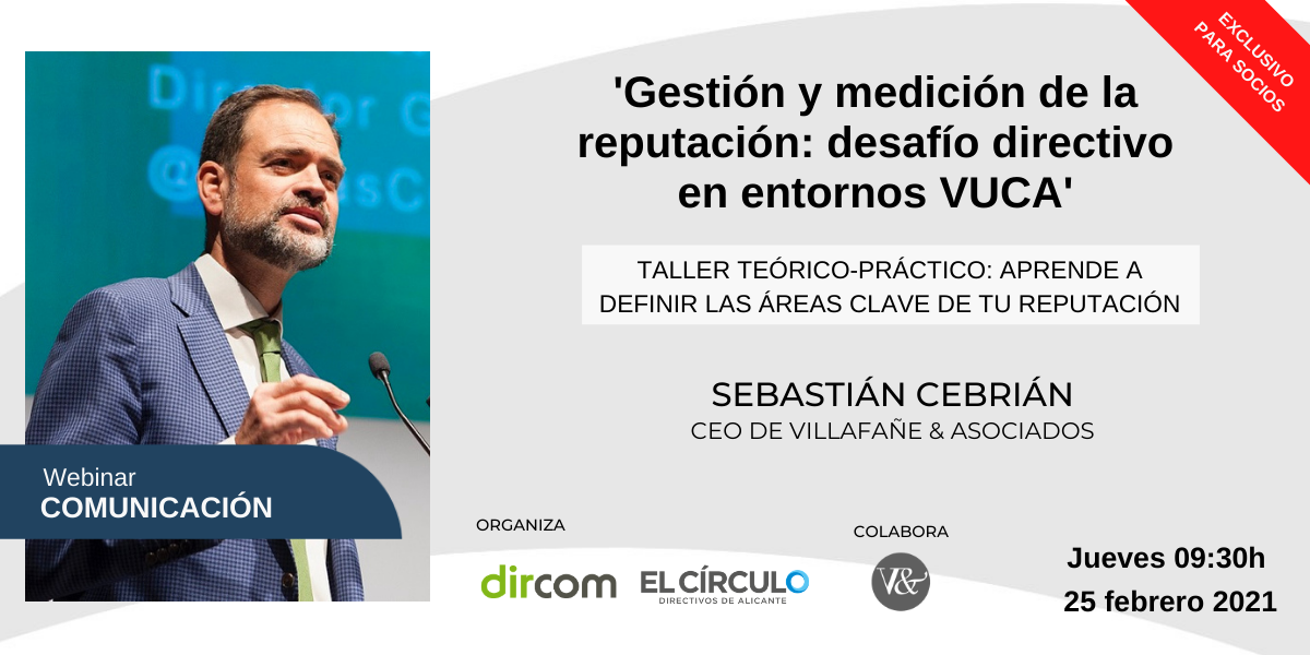 📢Exclusivo para socios: Webinar ‘Gestión y medición de la reputación: desafío directivo en entornos VUCA’ con Sebastián Cebrián | Jueves, 25 de febrero, a las 09:30h ¡Inscríbete!