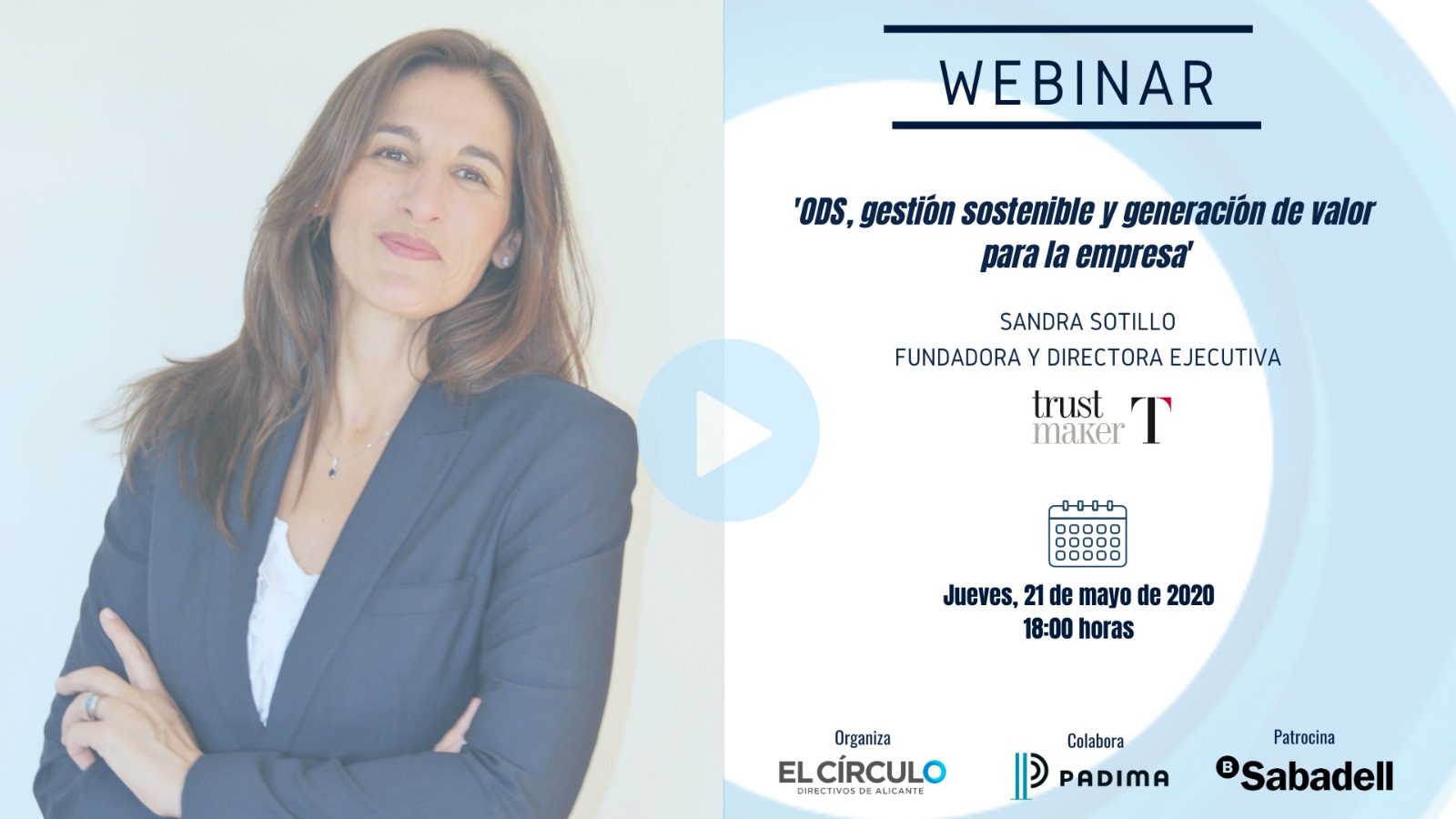 Aspectos que trataremos en el webinar ‘ODS, gestión sostenible y generación de valor para la empresa‘, impartido por Sandra Sotillo, experta en gestión de la confianza, reputación corporativa, reputación del líder, cultura organizativa y negocio responsable. El encuentro digital tendrá lugar el próximo jueves, 21 de mayo, a las 18:00h, con la colaboración de Padima y el patrocinio de Banco Sabadell.
