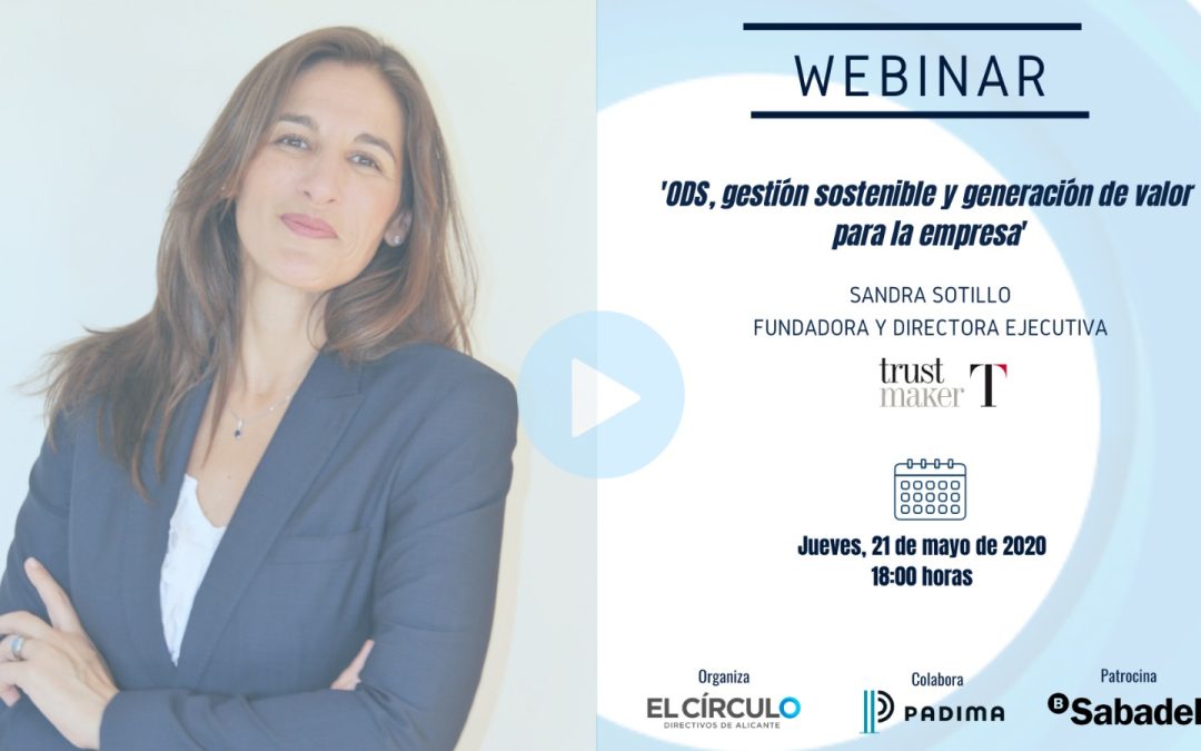 Webinar ‘ODS, gestión sostenible y generación de valor para la empresa’ con Sandra Sotillo, CEO TrustMaker ¡Inscríbete!