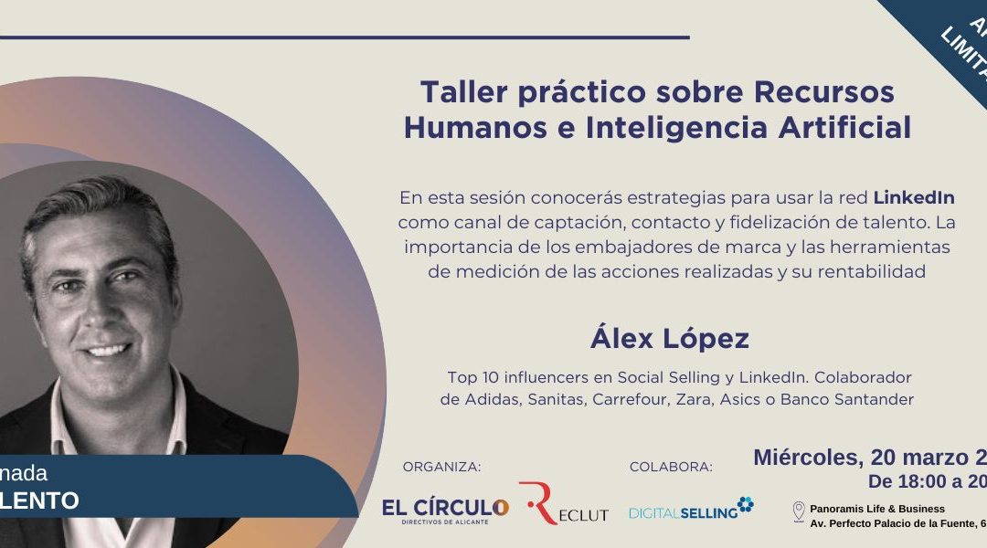 Taller práctico sobre RRHH e Inteligencia Artificial con Álex López, TOP 10 Influencers en LinkedIn | Miércoles, 20 de marzo, a las 18:00h ¡Inscríbete!