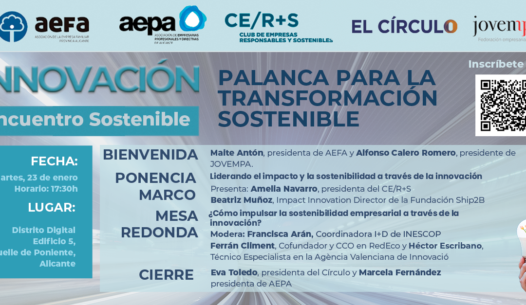 Jornada Sostenibilidad «Innovación, palanca para la transformación sostenible» | Martes, 23 de enero, a las 17:30h ¡Inscríbete!