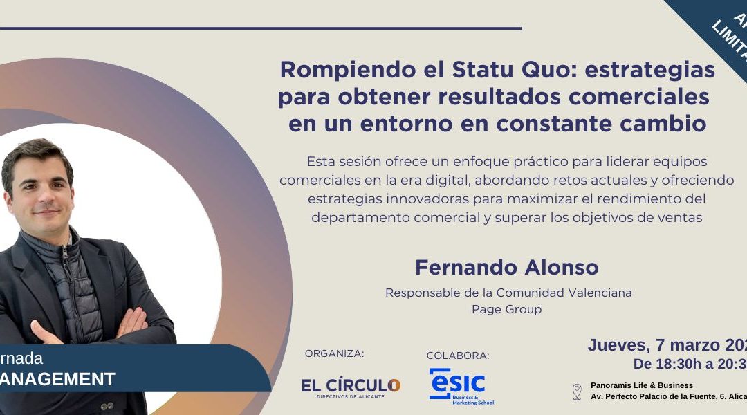 Jornada Management «Rompiendo el Statu Quo: estrategias para obtener resultados comerciales en un mundo en constante cambio» | Jueves, 7 de marzo, a las 18:30 ¡Inscríbete!