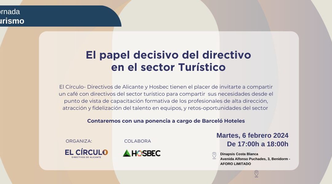 Encuentro ‘El papel decisivo del directivo en el sector Turístico’ | Martes, 6 de febrero, a las 17:00h en Dinapsis Benidorm