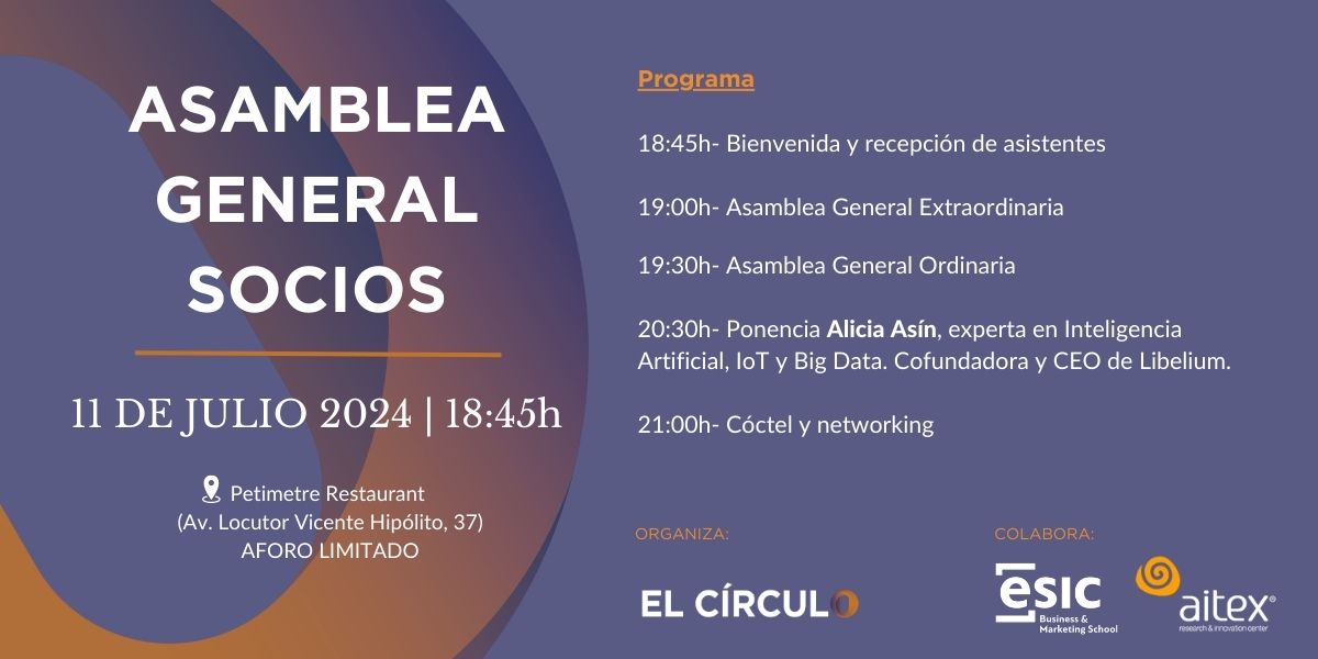 ¡Juntos de nuevo en el evento del verano de El Círculo-Directivos Alicante! El próximo jueves 11 de julio celebramos la Asamblea General de Socios con todos nuestros asociados en Petimetre Restaurant.