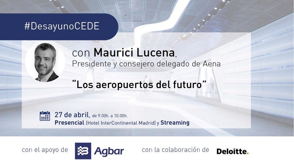Desayuno CEDE con Maurici Lucena, presidente de AENA | Jueves, 27 de abril, de 9:00 a 10:00h ¡Inscríbete en streaming o presencial!