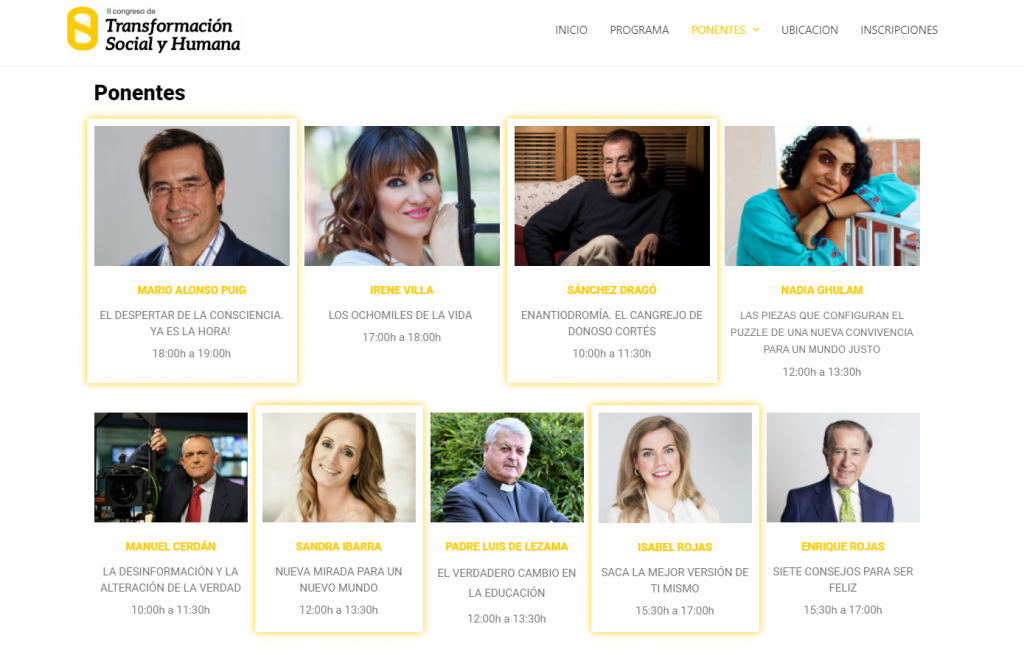 El congreso reunirá, en un mismo espacio, a reconocidas personalidades como Sánchez Dragó, Irene Villa, Mario Alonso Puig, Manuel Cerdán o Enrique Rojas Montes, entre muchas otras.