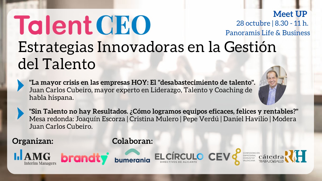 El Círculo-Directivos Alicante colabora en TalentCEO, una jornada organizada por nuestros socios AMG Interim Managers y Brandty, que ofrece diferentes visiones que aportan soluciones innovadoras a los grandes retos actuales en materia de personas.