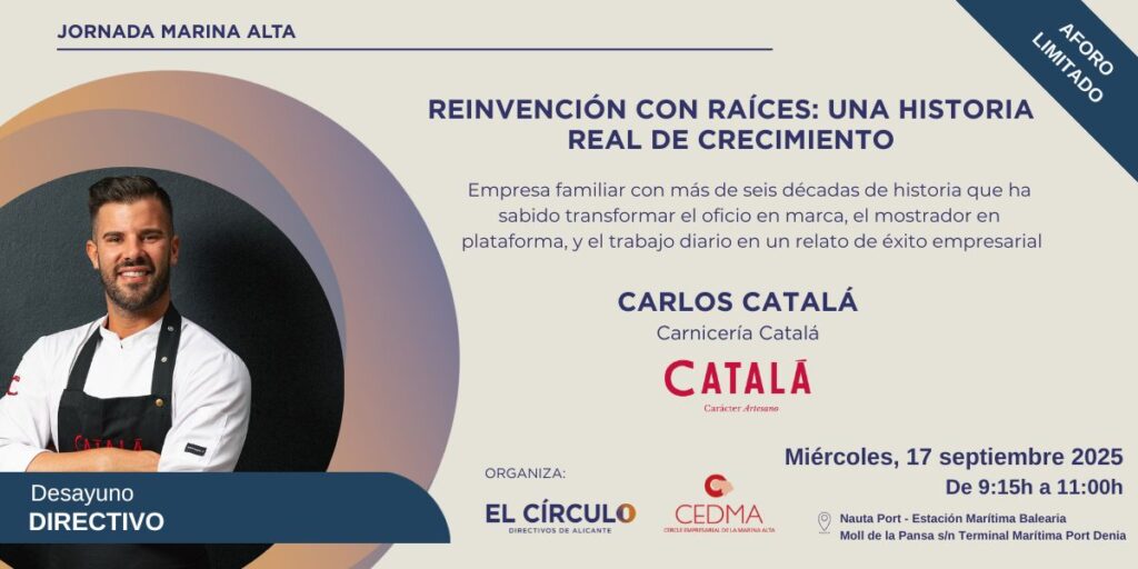 Los Almuerzos Directivos de El Círculo no solo acercan el éxito empresarial a nuestra provincia, sino que también revelan la historia personal y profesional detrás de cada directivo. Aprovecha esta oportunidad única para aprender a través de la valiosa experiencia de otros y potenciar la competitividad de las pymes alicantinas.
